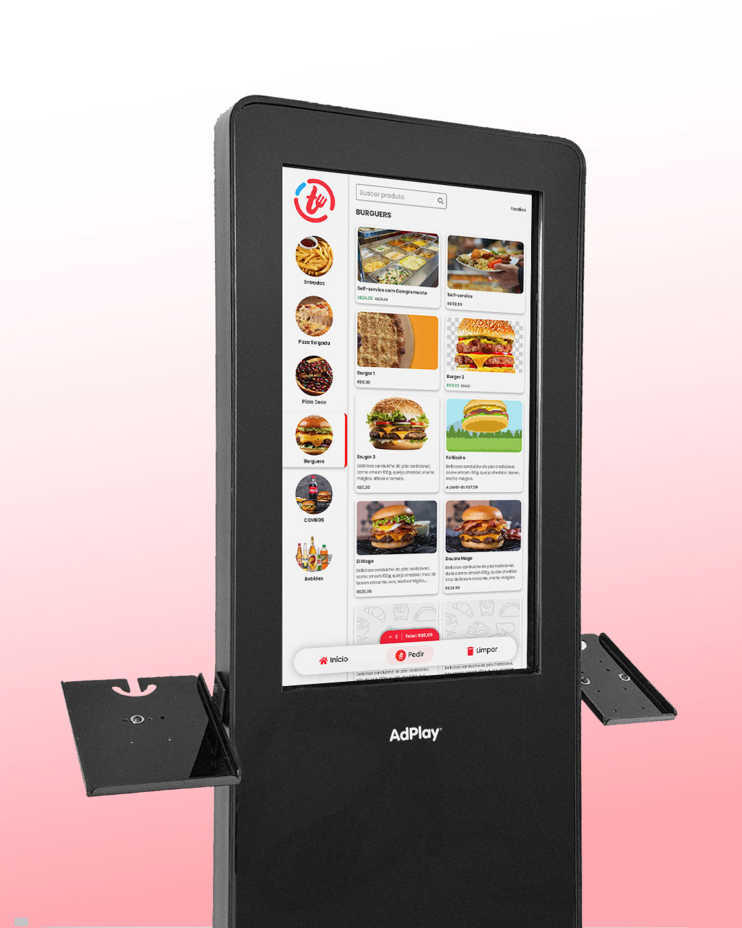 Imagine oferecer um atendimento impecável, disponível 24 horas por dia, 7 dias por semana, sem complicações. Com o Totem AdPlay 43” Touchscreen, você pode desenvolver e rodar sua própria aplicação personalizada, garantindo uma experiência elegante, interativa e estratégica para seus clientes.